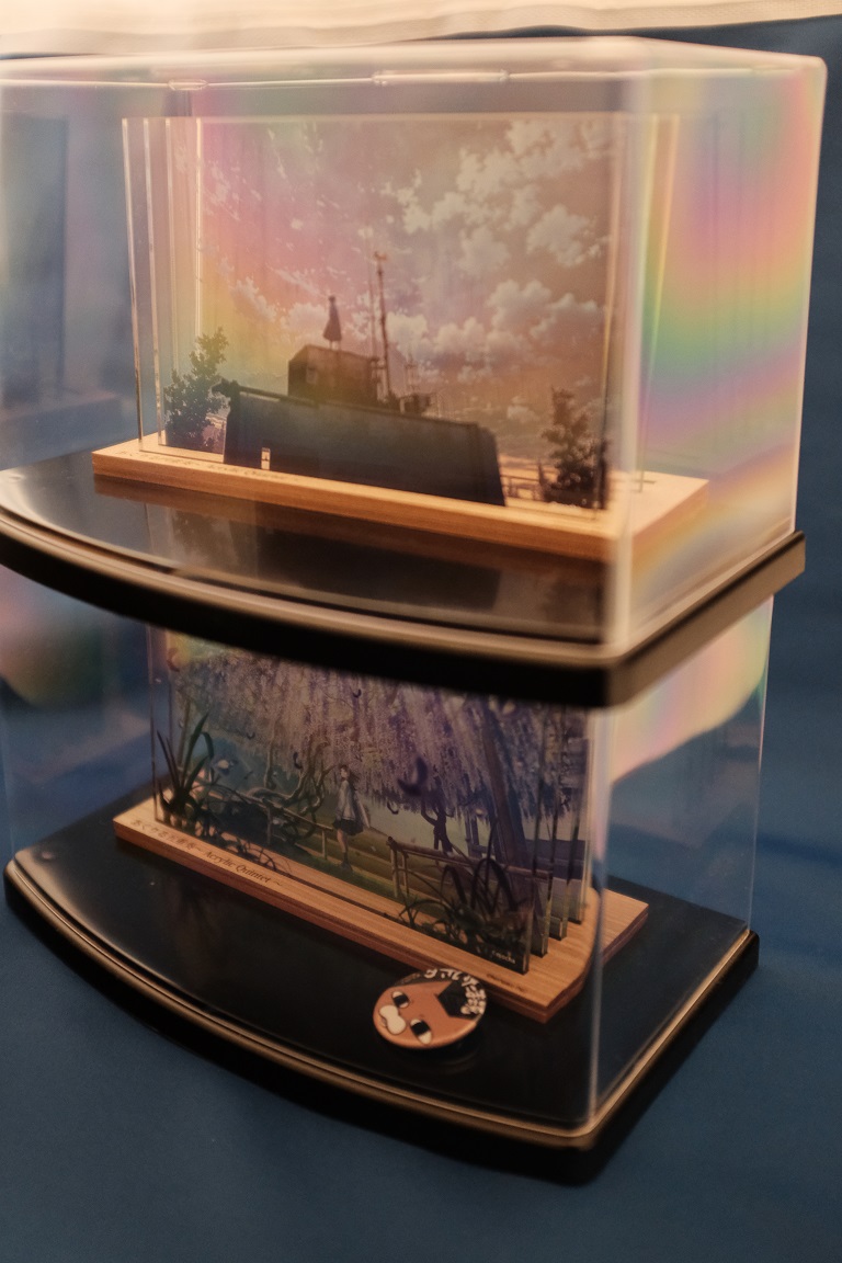 3~5枚のアクリル板に絵が重ねられているので、視点を動かすと前景・主題・背景の動きが面白い。